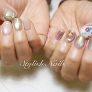 ホワイトフレンチに蛍光カラーの細ライン♪