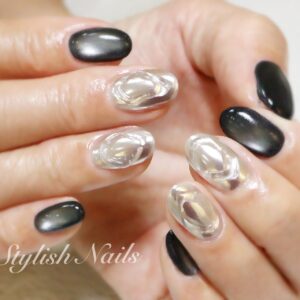 ベージュグラデーション&ラメスキニーライン