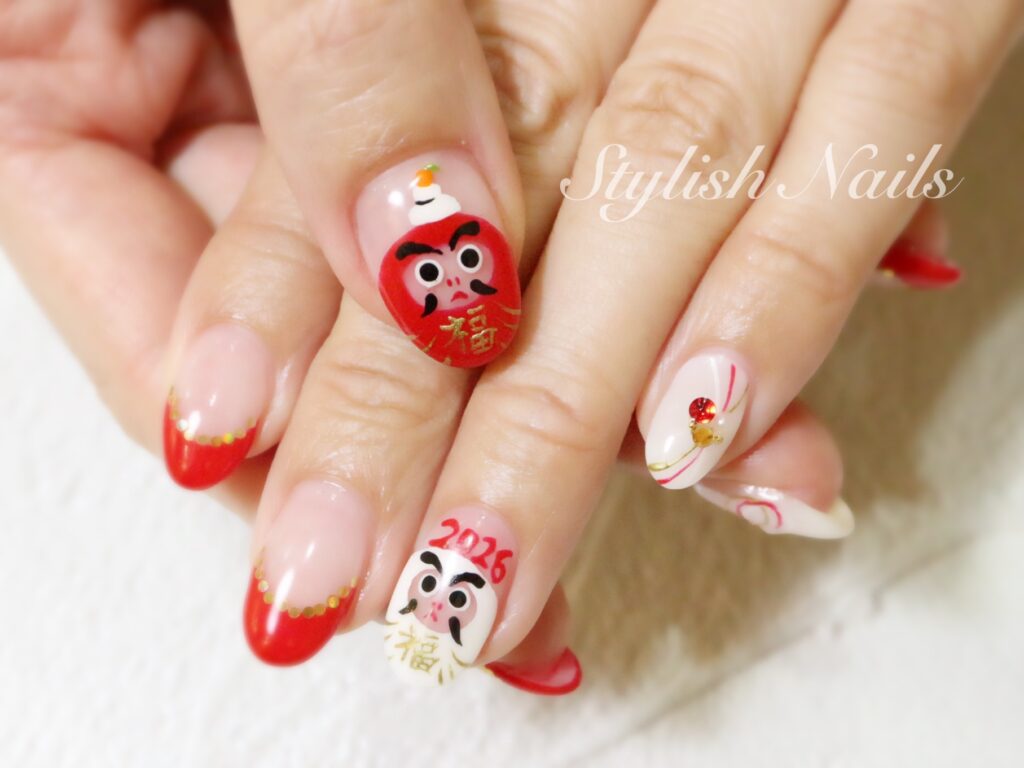 毎年恒例のだるまさんネイル♡