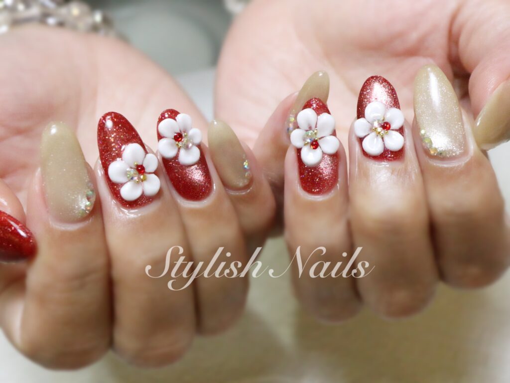 ゴールド×レッド×ホワイトフラワー♡