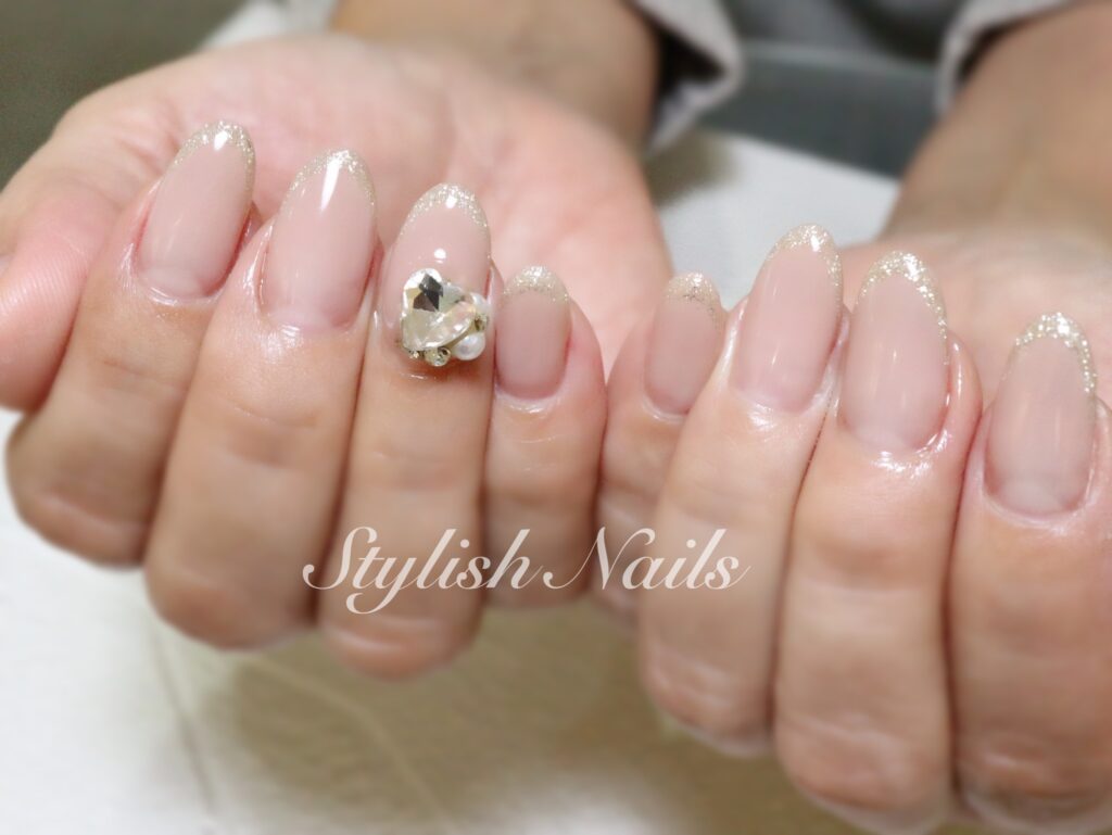 スキニーラメフレンチ×ワンポイントビジュー☆