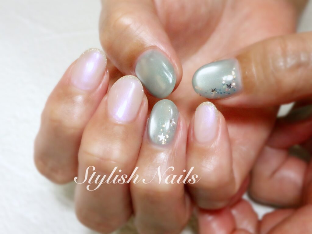 2026年4月22日 2026年4月22日 StylishNails お客様ネイルオールシーズンマグネット季節のネイル 春のグリーンマグ♡ 淡いグリーンが春らしい♪ 爽やかなグリーンカラー☆ パールホワイト×グリーン☆ FacebookXHatena